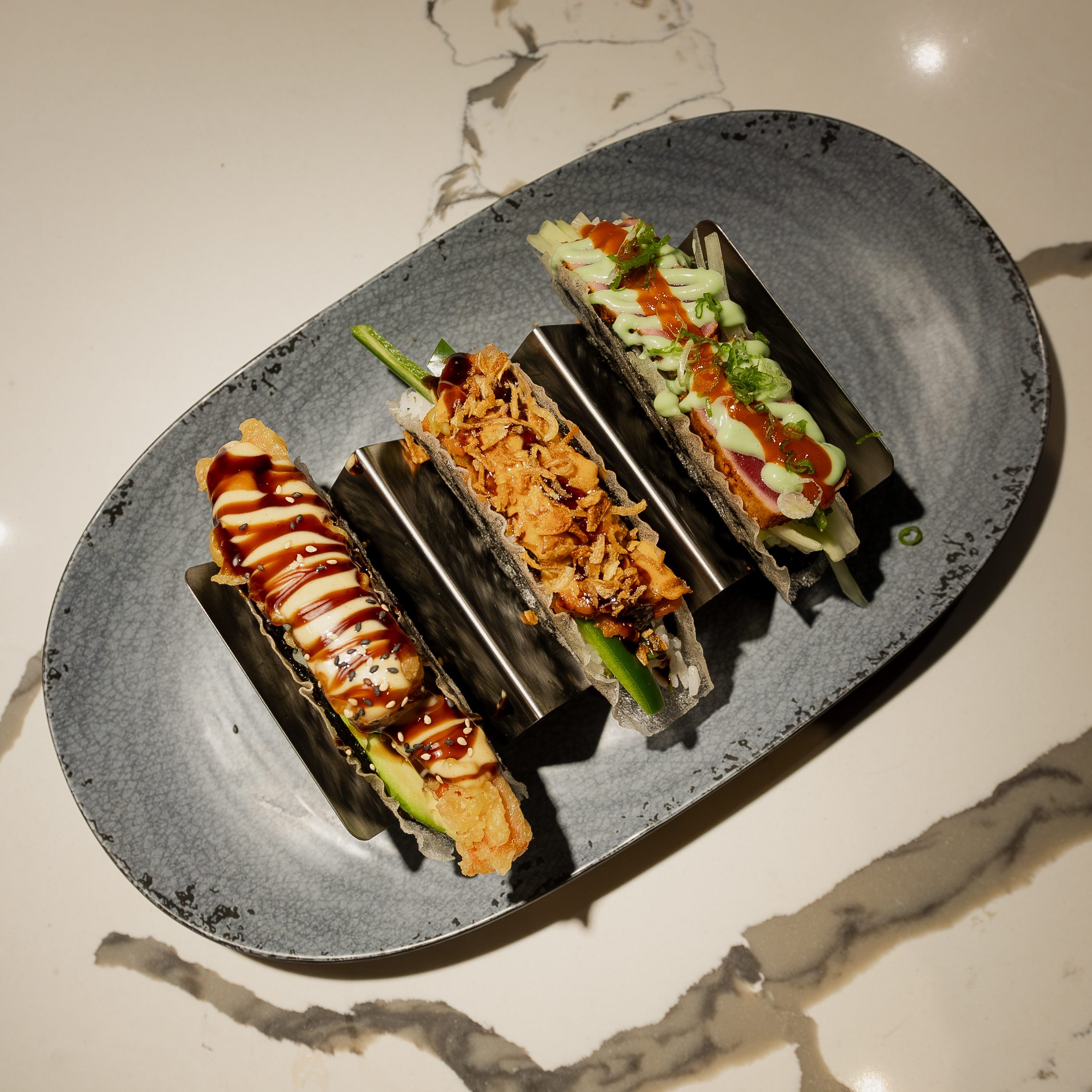 Our cuisine blends traditional Japanese sushi with bold, contemporary flavors, offering a fresh and playful take on classic favorites. From expertly crafted rolls to signature sushi tacos and customizable creations, each dish is designed to balance quality ingredients with vibrant textures and sauces. Rooted in craftsmanship and creativity, our menu invites guests to explore sushi in a way that feels both elevated and approachable—right here in Pittsburgh.